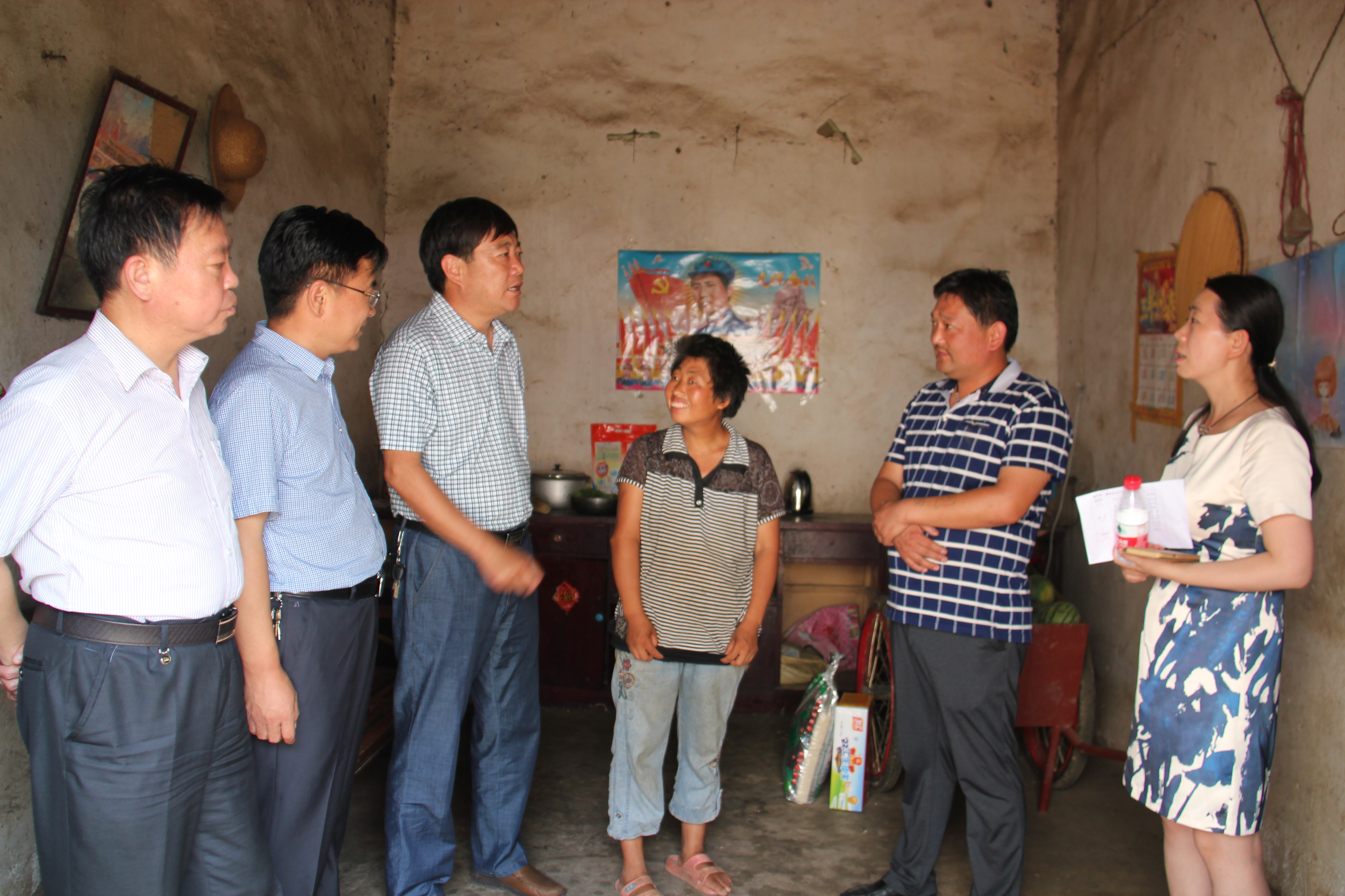 由于貧困戶分散在不同村民組,大家兵分多路,在村干部的帶領(lǐng)下分頭前往。在蟻蜂鎮(zhèn)黨委書記張建設(shè)、鎮(zhèn)長趙敏陪同下,熊校長、王書記先看望了村委附近的兩戶貧困戶。他們與貧困戶面對面,手拉手,親切溝通交流,噓寒問暖,仔細詢問他們生活中的實際困難,有哪些迫切解決的問題。并鼓勵他們積極向上,充分發(fā)揮自身努力,尋找出一條適合的脫貧致富道路來。汗水濕透了每個人的衣裳,但同志們沒有一個人叫苦叫累。此時此刻,他們的心與貧困戶緊緊地連在了一起;此時此刻,他們想的更多的是如何幫助這些貧困戶,如何讓這些貧困戶早日擺脫貧困,過上小康生活。