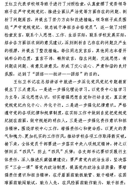 學校領(lǐng)導班子召開黨風黨紀專題民主生活會